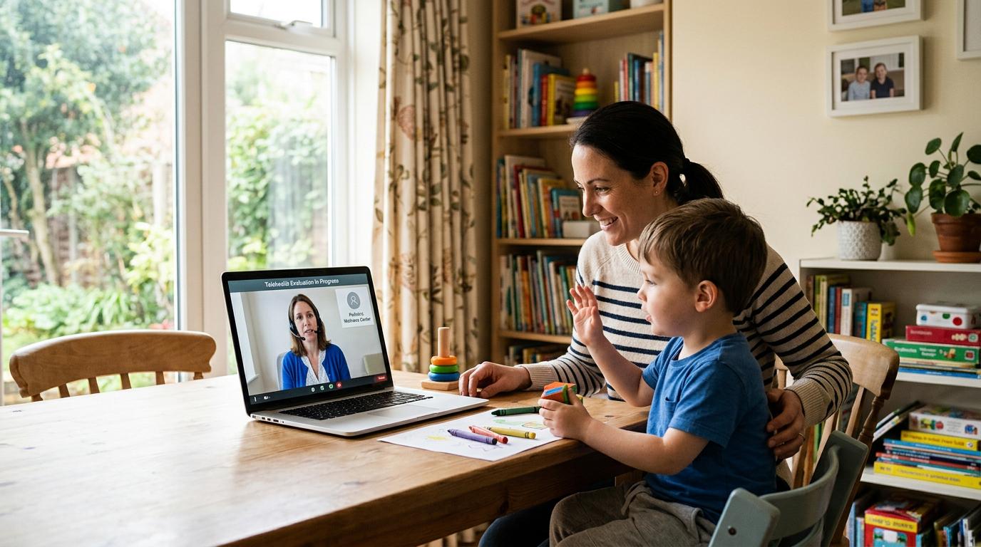 Families may choose to complete an Initial Diagnostic Evaluation through a virtual format, which allows the child to be observed in a familiar setting. This approach can offer valuable insight into everyday interactions between the child and caregiver. During the session, the psychologist guides the caregiver through simple activities while observing communication, engagement, and behavior in real time.